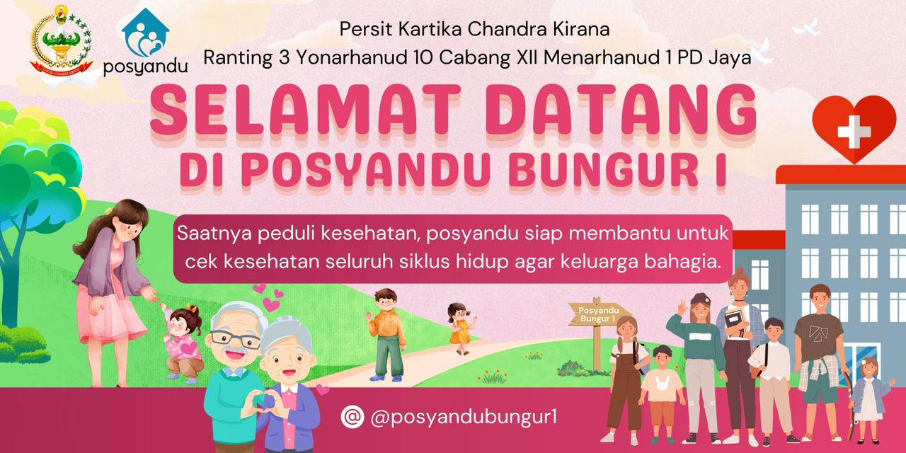 Posyandu atau Pos Pelayanan Terpadu Bungur 1 Persit KCK Ranting 3 Yonarhanud 10 Cabang XII Menarhanud I PD Jaya merupakan salah satu bentuk Upaya Kesehatan Bersumberdaya Masyarakat (UKBM) yang dikelola dan diselenggarakan dari, oleh, untuk masyarakat dalam rangka pembangunan kesehatan.